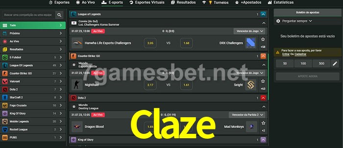 O Claze oferece uma grande seleção de opções de apostas em e-sports com probabilidades competitivas